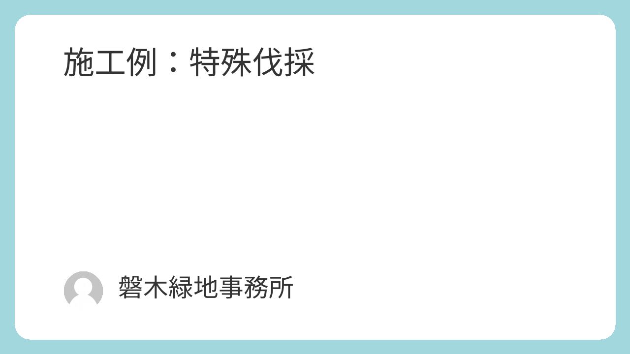施工例:特殊伐採 施工事例 2026.03.04 目次 施工例①施工例②施工例③ 施工例① 高さ15mほどのナラ枯れの伐採です。木に直接登り、断幹を行いました。 施工例② 高さ13mほどのスギです。建物のすぐ横にあり車両が近づけないため、木に直接登り断幹を行いました。 施工例③ 高さ15mほどのキハダです。建物の裏側にあり車両が近づけません。枝が建物にかぶっているため、建物側の枝下ろしを行いました。